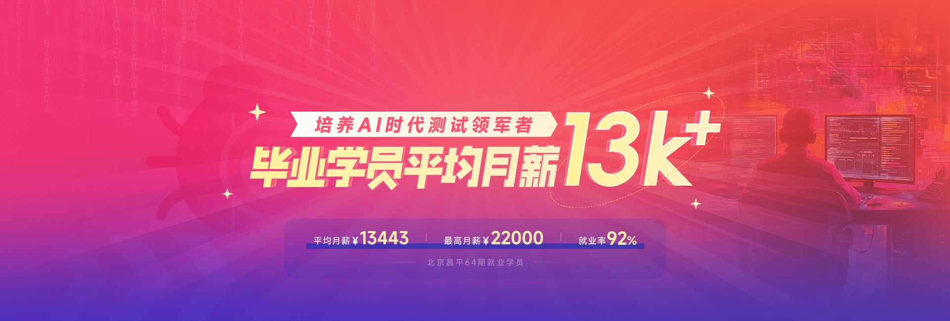 學(xué)員平均就業(yè)月薪13443元